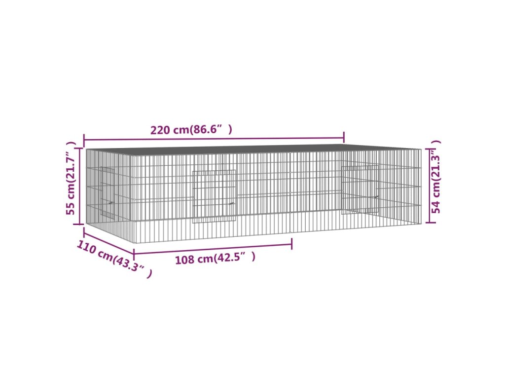 2dílná klec pro králíka 220 x 110 x 55 cm pozinkované železo 171563