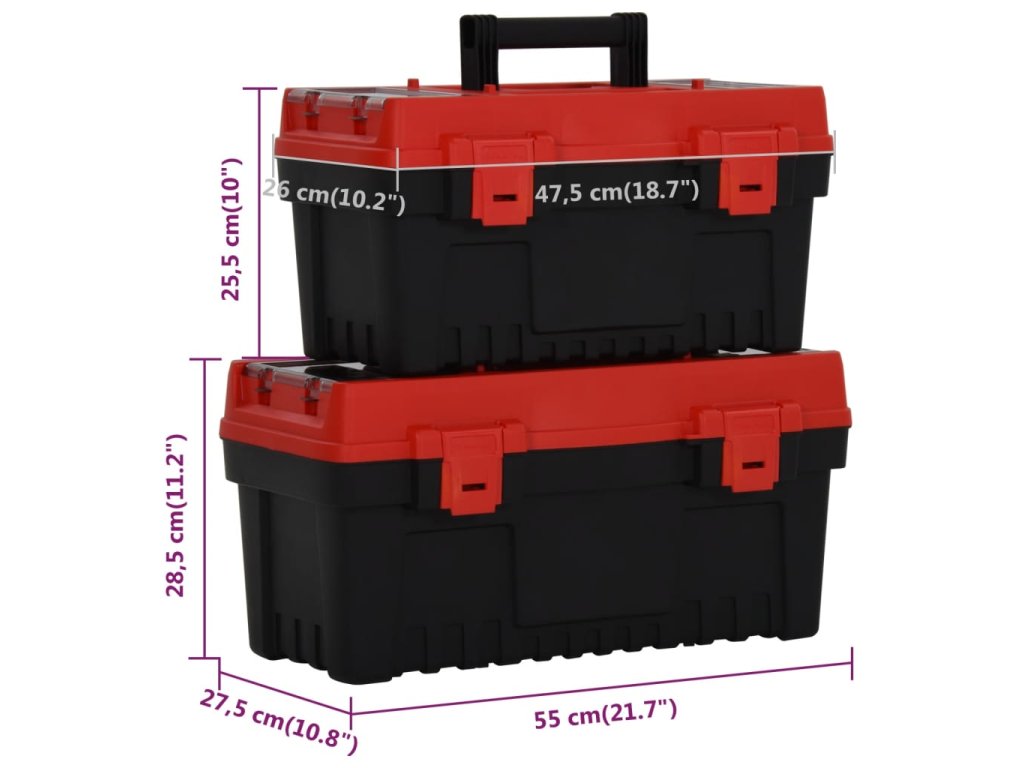 2dílná sada boxů na nářadí černá a červená polypropylen 152103