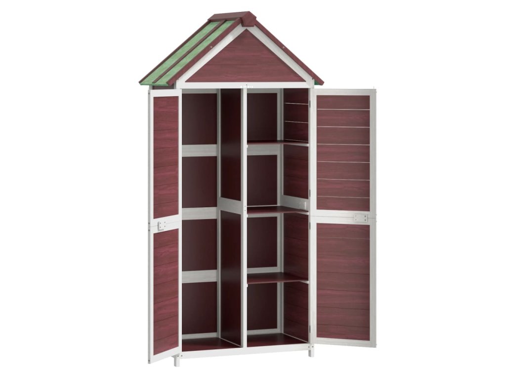 - Velký a organizovaný prostor: Kůlna je dokonale navržená pro různé zahradní nářadí, vybavení pro péči o trávník, bazénové potřeby a nářadí s dlouhou násadou, jako jsou košťata, hrábě atd.