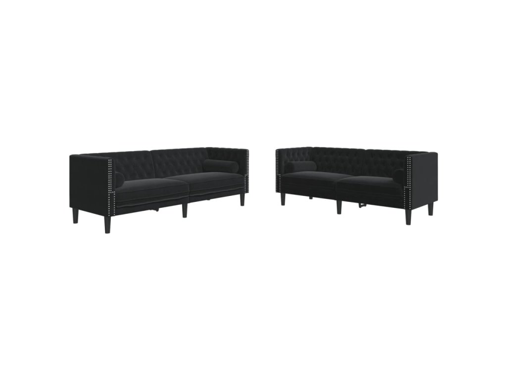 2dílná sedací souprava Chesterfield s podhlavníky černá samet 3209296