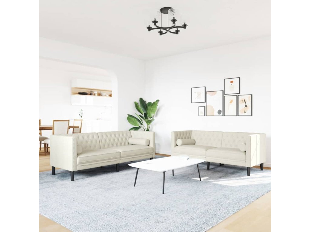 2dílná sedací souprava Chesterfield s podhlavníky krémová samet 3209298