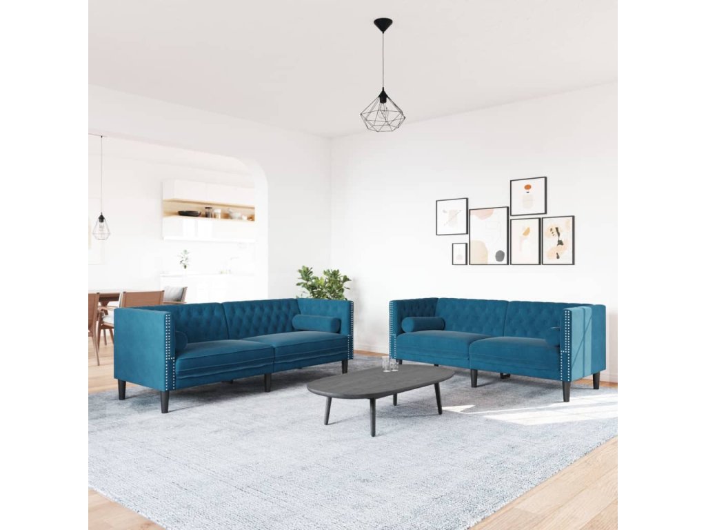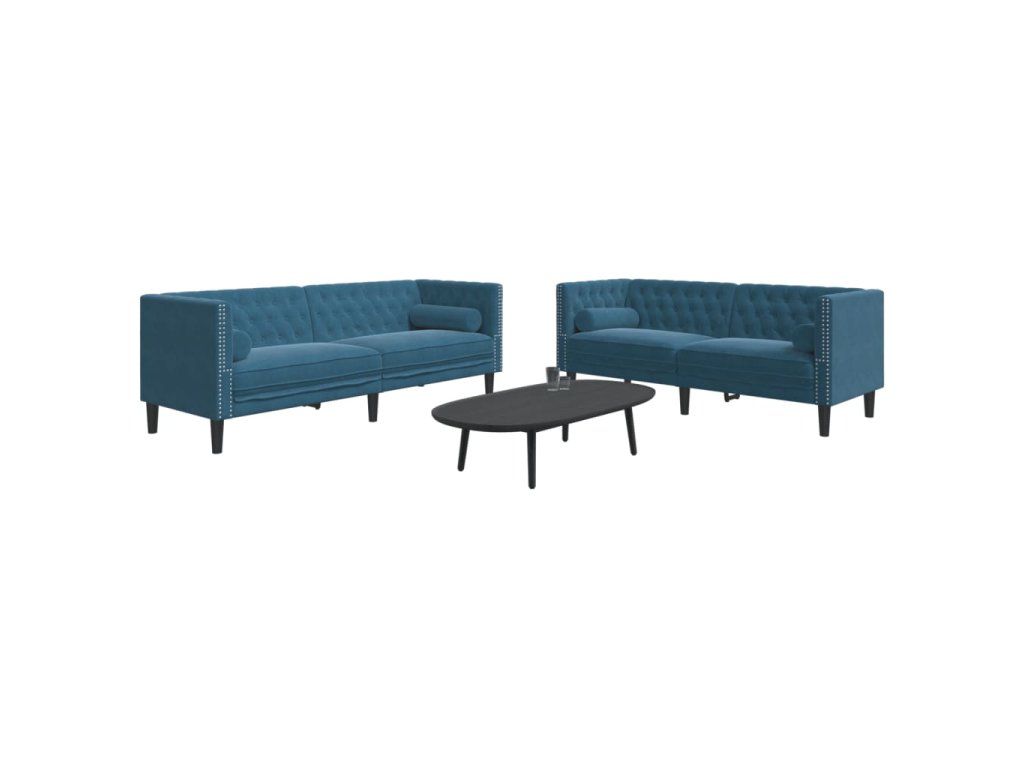 2dílná sedací souprava Chesterfield s podhlavníky modrá samet 3209299