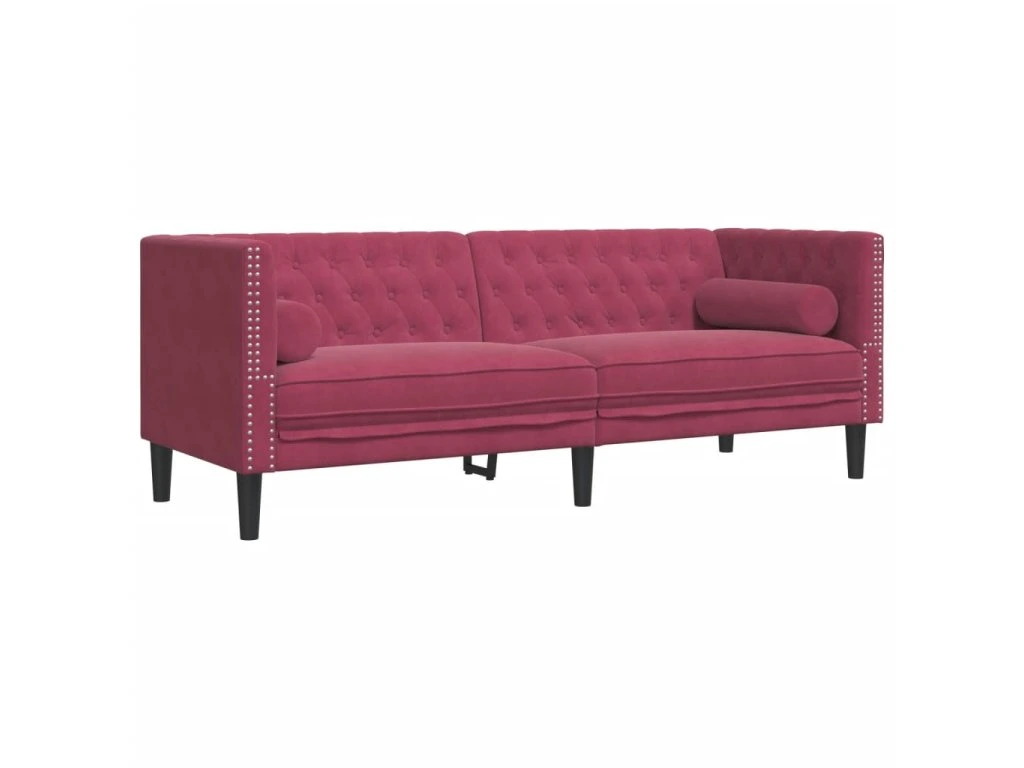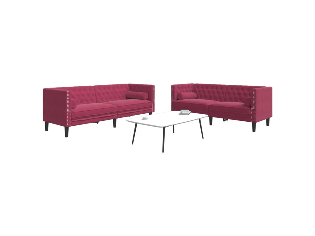 2dílná sedací souprava Chesterfield s podhlavníky vínová samet 3209295