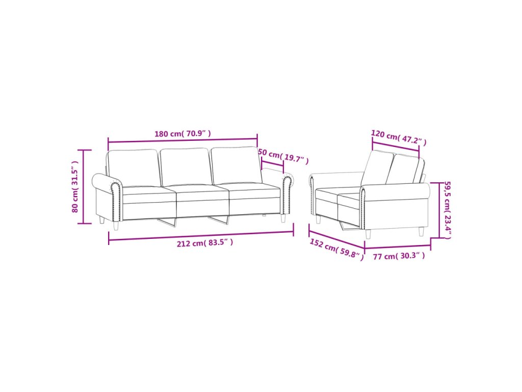 - Celkové rozměry: 212 x 77 x 80 cm (Š x H x V)