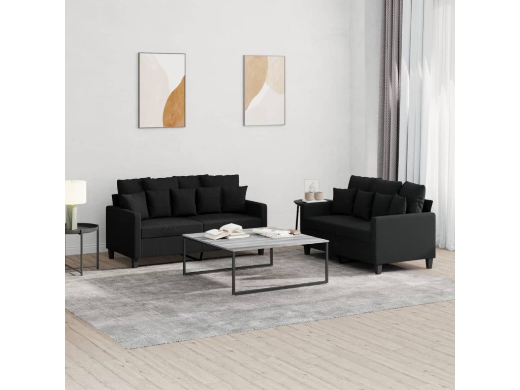 2dílná sedací souprava s poduškami černá textil 3201652
