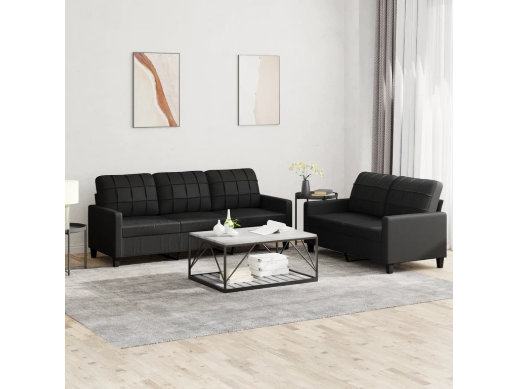 2dílná sedací souprava s poduškami černá umělá kůže 3201378