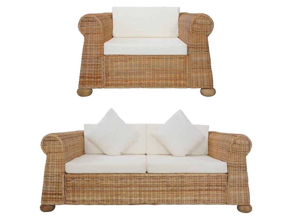 Vzhledem k originálnímu ratanovému materiálu se sestava snadno čistí, je mimořádně odolná a vhodná pro každodenní použití. Má robustní dřevěný rám, který je velmi odolný a stabilní. Silné podušky na sedák a opěradlo jsou mimořádně pohodlné a mají snímatelné potahy, takže se dají snadno prát. Široké područky vám navíc zajistí pohodlí při sezení.