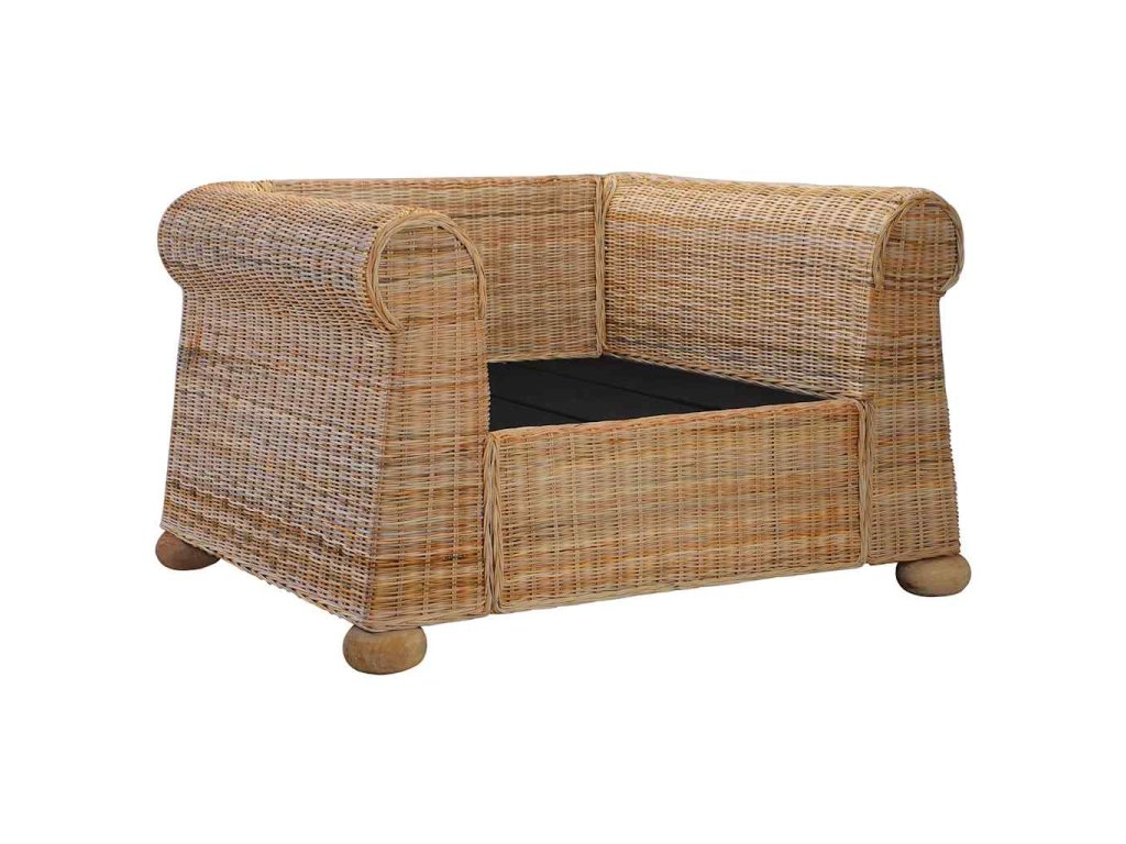 - Materiál: přírodní ratan + rám z masivního mangovníkového dřeva + čalounění z textilu