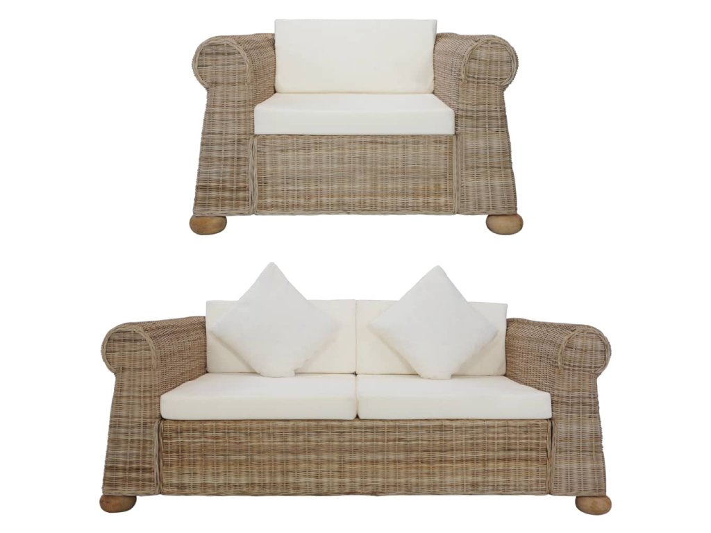 2dílná sedací souprava s poduškami přírodní ratan 278601