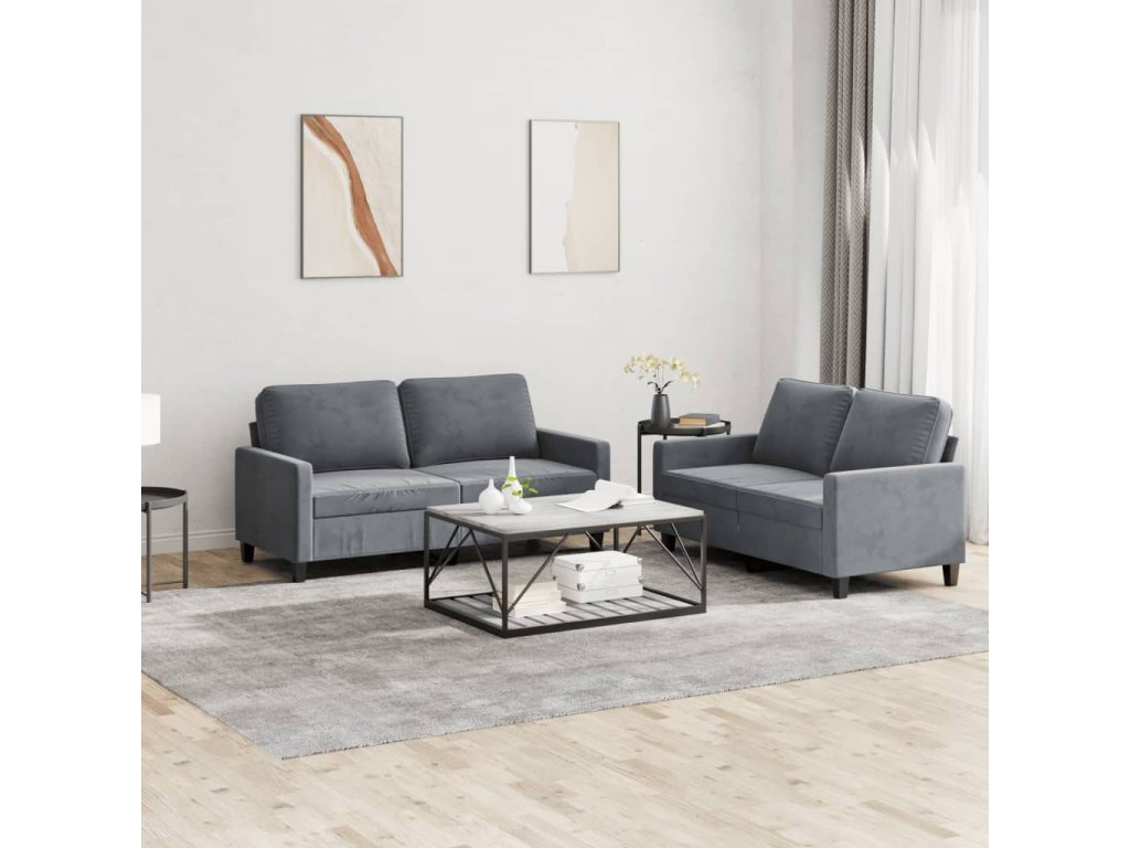 2dílná sedací souprava s poduškami tmavě šedá samet 3201497