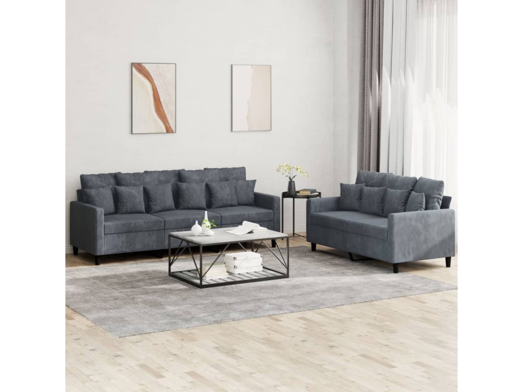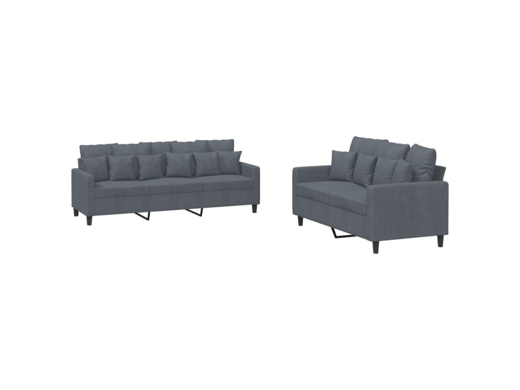 2dílná sedací souprava s poduškami tmavě šedá samet 3201721