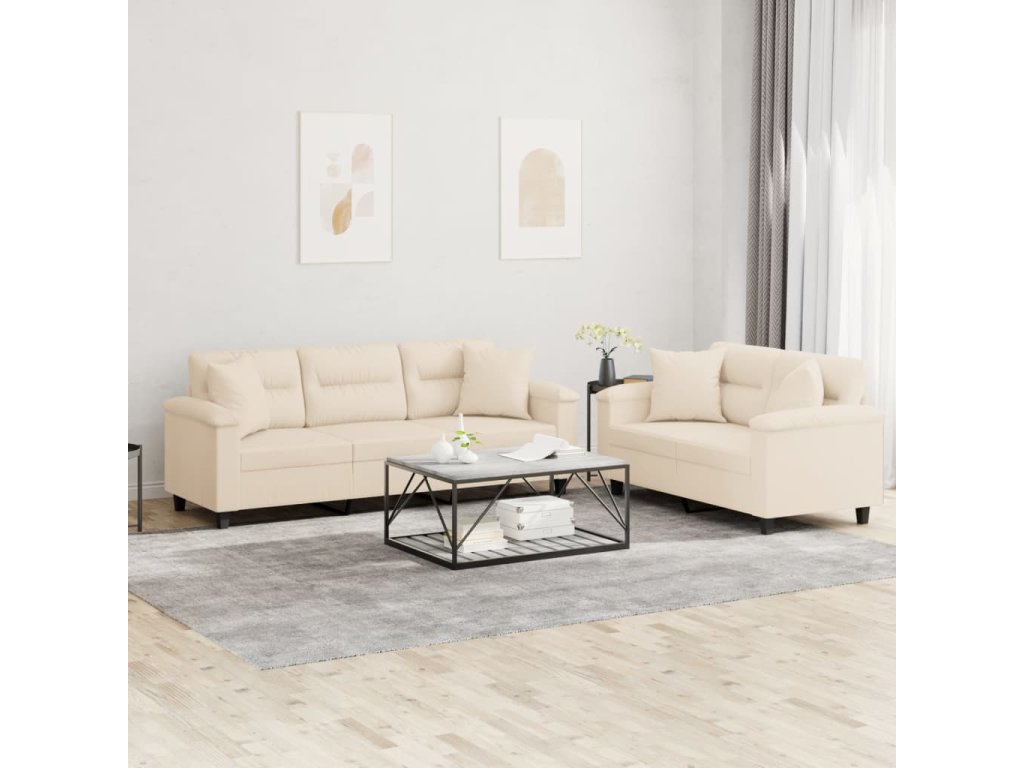2dílná sedací souprava s polštáři béžová tkanina z mikrovlákna 3202355