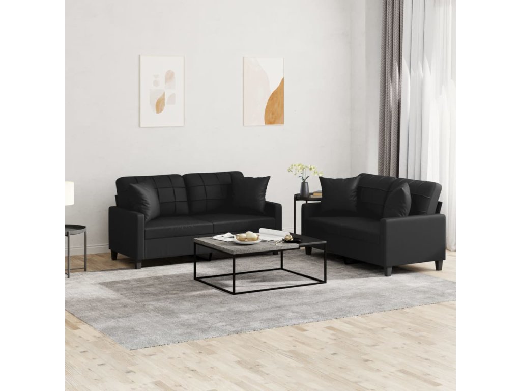 2dílná sedací souprava s polštáři černá umělá kůže 3201368