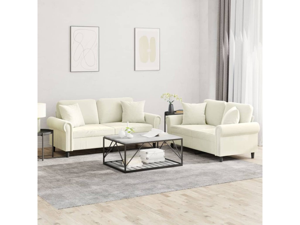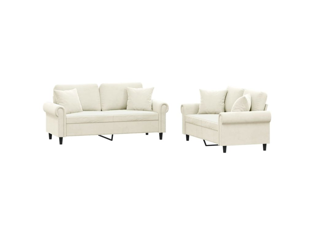 2dílná sedací souprava s polštáři krémová samet 3202238