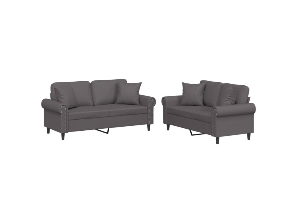 2dílná sedací souprava s polštáři šedá umělá kůže 3202162