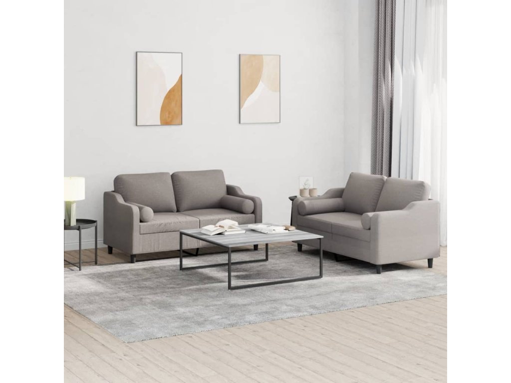 2dílná sedací souprava s polštáři taupe textil 3201825