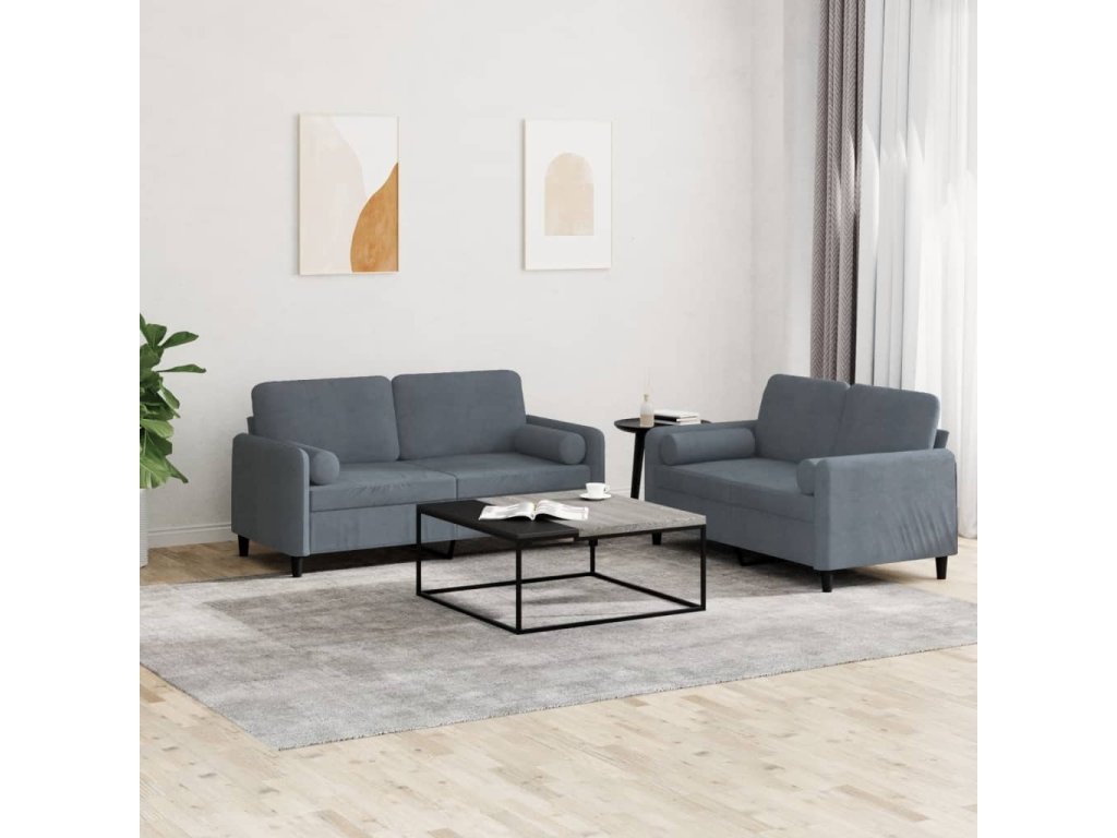 2dílná sedací souprava s polštáři tmavě šedá samet 3201995