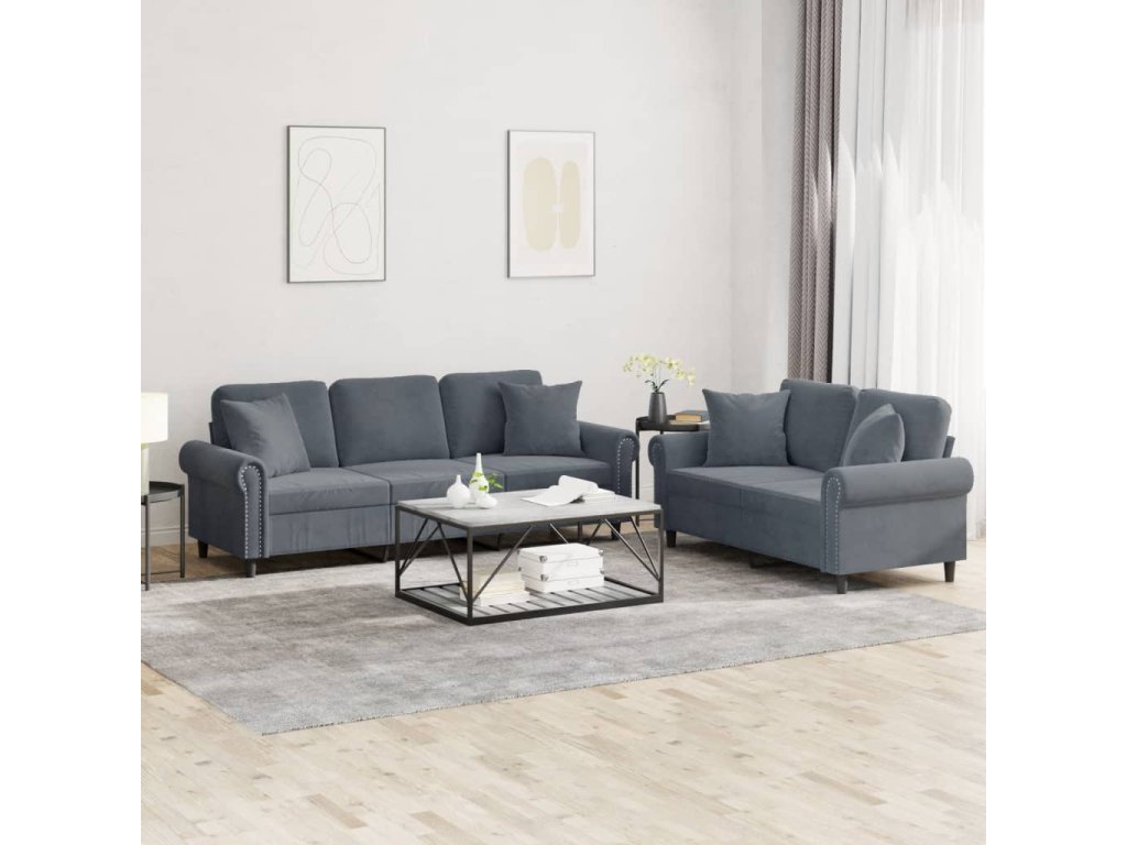 2dílná sedací souprava s polštáři tmavě šedá samet 3202271
