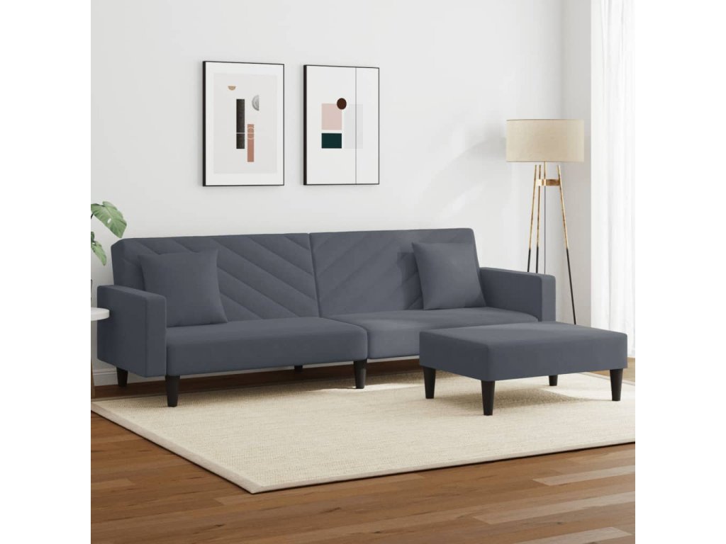 2dílná sedací souprava s polštáři tmavě šedá samet 3216269