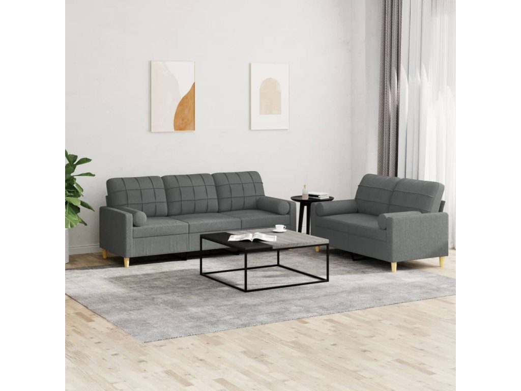 2dílná sedací souprava s polštáři tmavě šedá textil 3201323