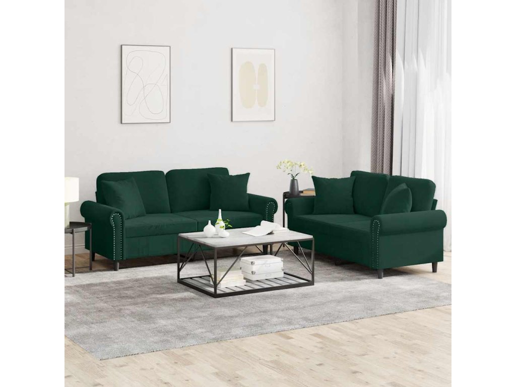 2dílná sedací souprava s poduškami tmavě zelená samet 3324702