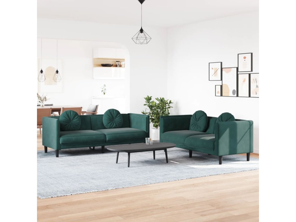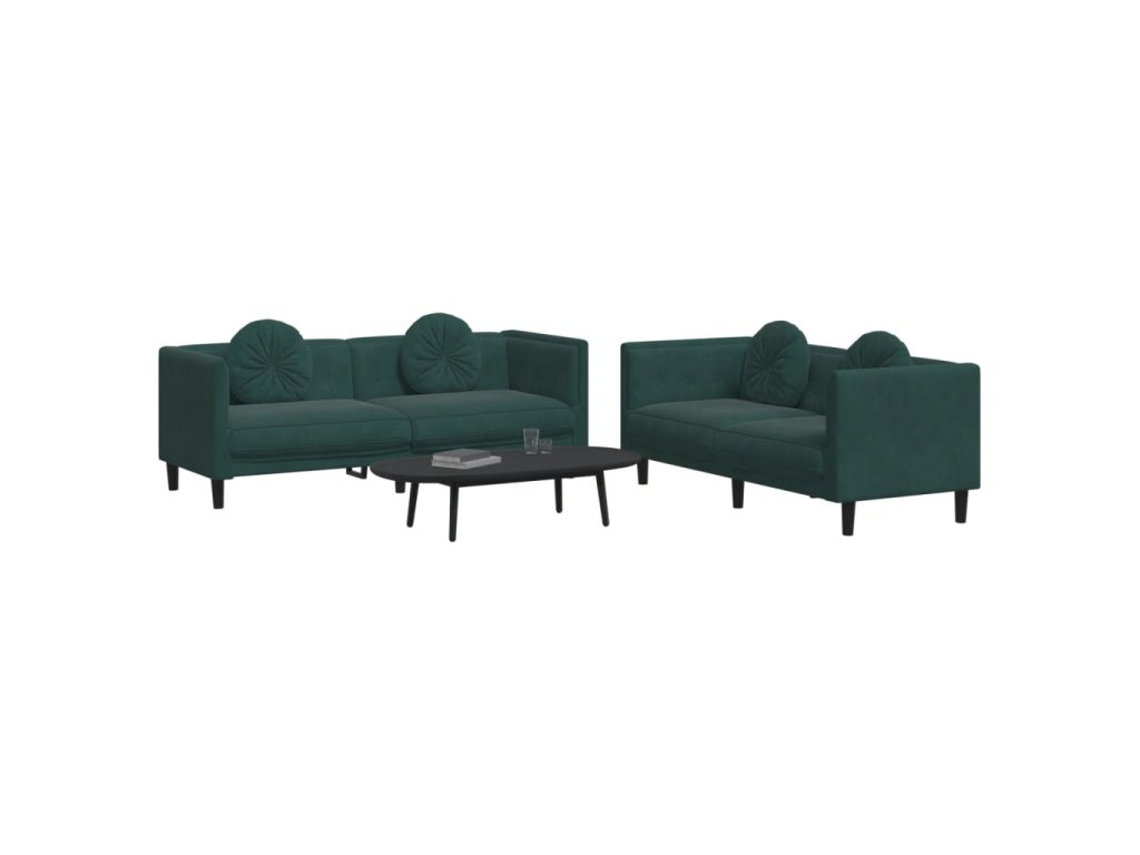 2dílná sedací souprava s polštáři tmavě zelená samet 3209259