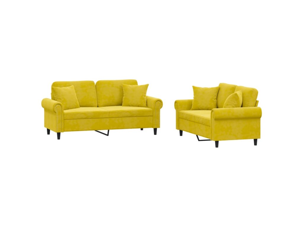 2dílná sedací souprava s polštáři žlutá samet 3202236