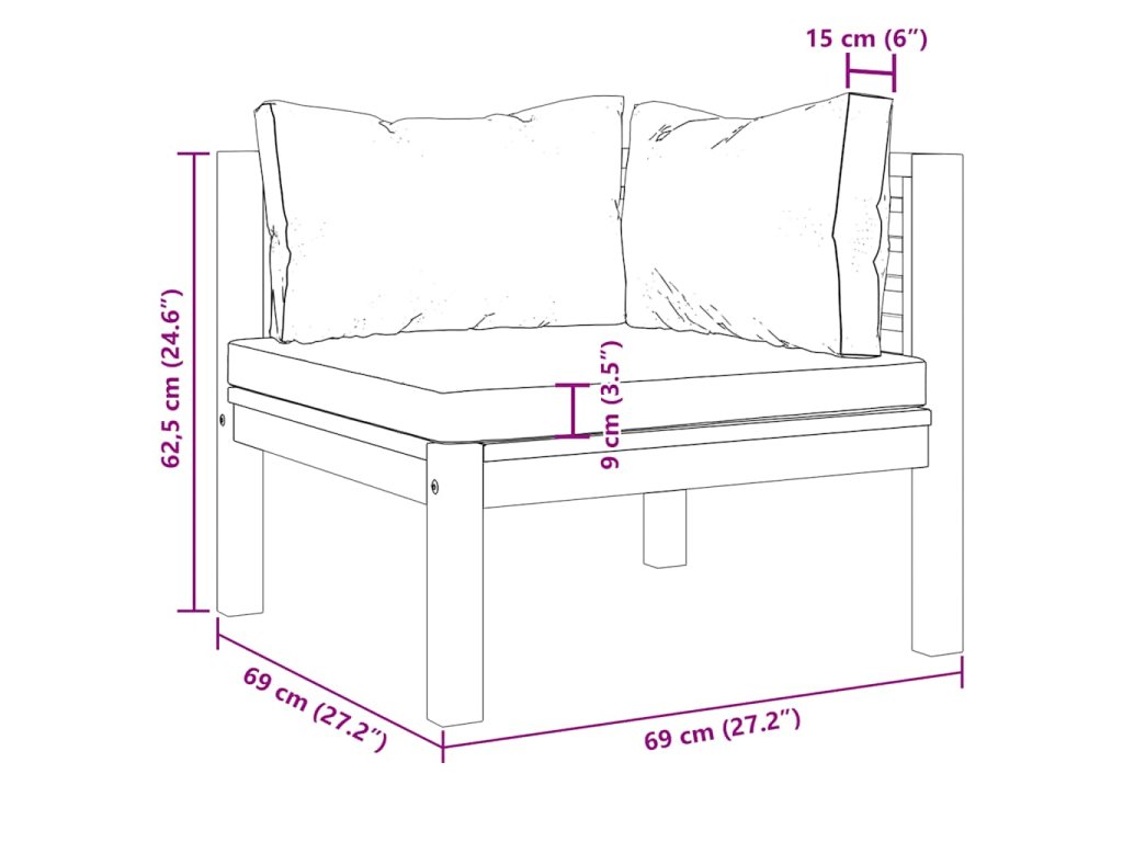 Sedací souprava je vyrobená z masivního akáciového dřeva, takže je pevná a robustní a vzhledem k olejové povrchové úpravě je vhodná pro venkovní použití. Polstrovaný sedák a podušky na opěradle poskytují maximální pohodlí při sezení. Dá se zkombinovat s dalšími dostupnými modulárními segmenty, takže si můžete vytvořit vlastní zahradní posezení!