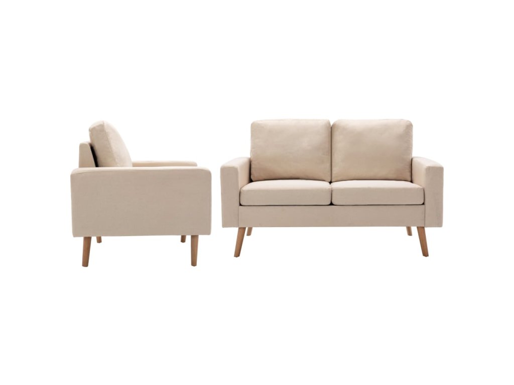 Sedací souprava je čalouněná na dotek měkkou látkou a má hustě polstrované matrace, na nichž se vám bude nesmírně pohodlně odpočívat. Celou konstrukci podepírá dřevěný rám, který nábytku zároveň dodává na stabilitě.