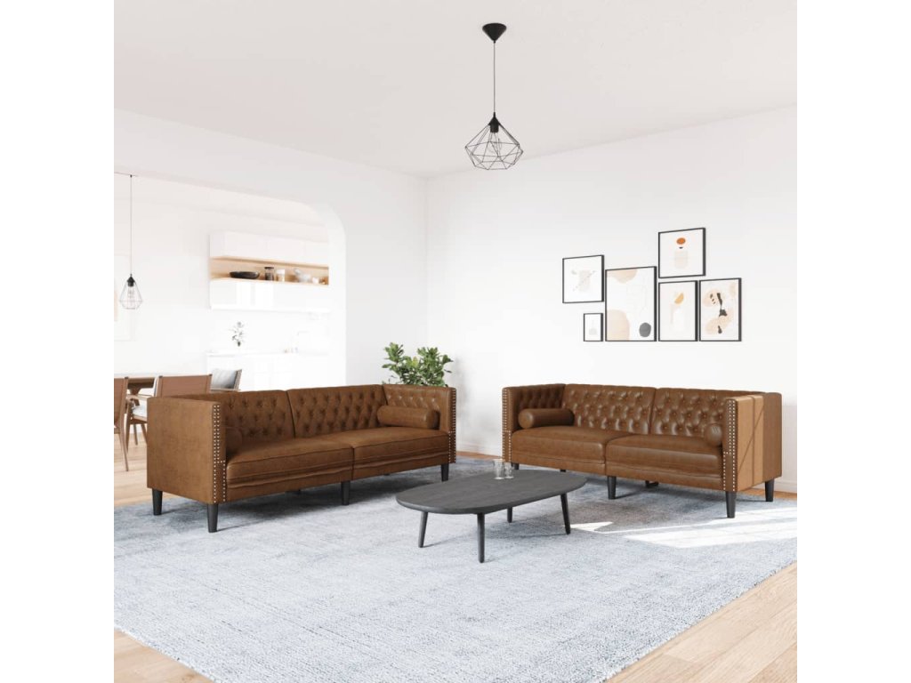 2dílná sedačka Chesterfield s podhlavníky hnědá umělý semiš 3209300