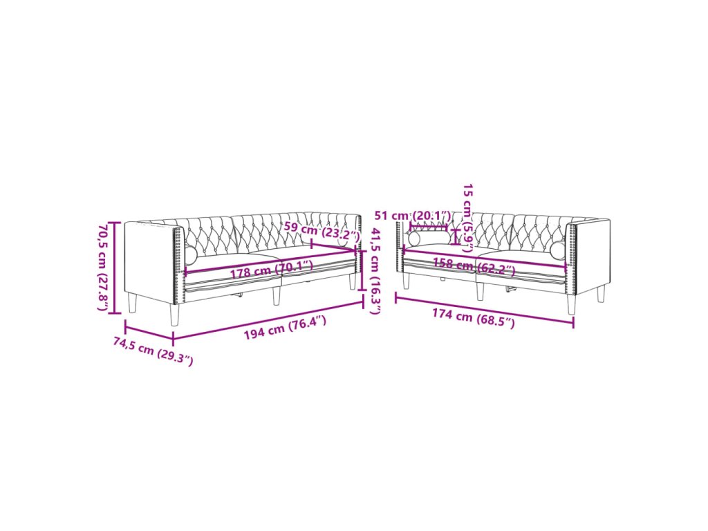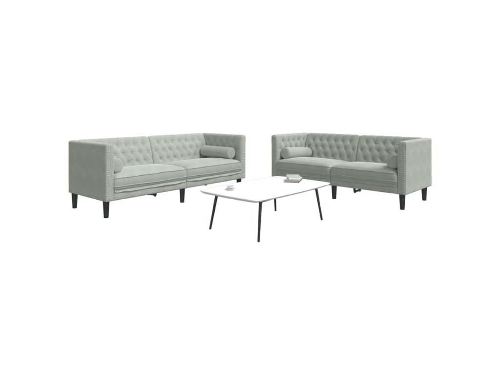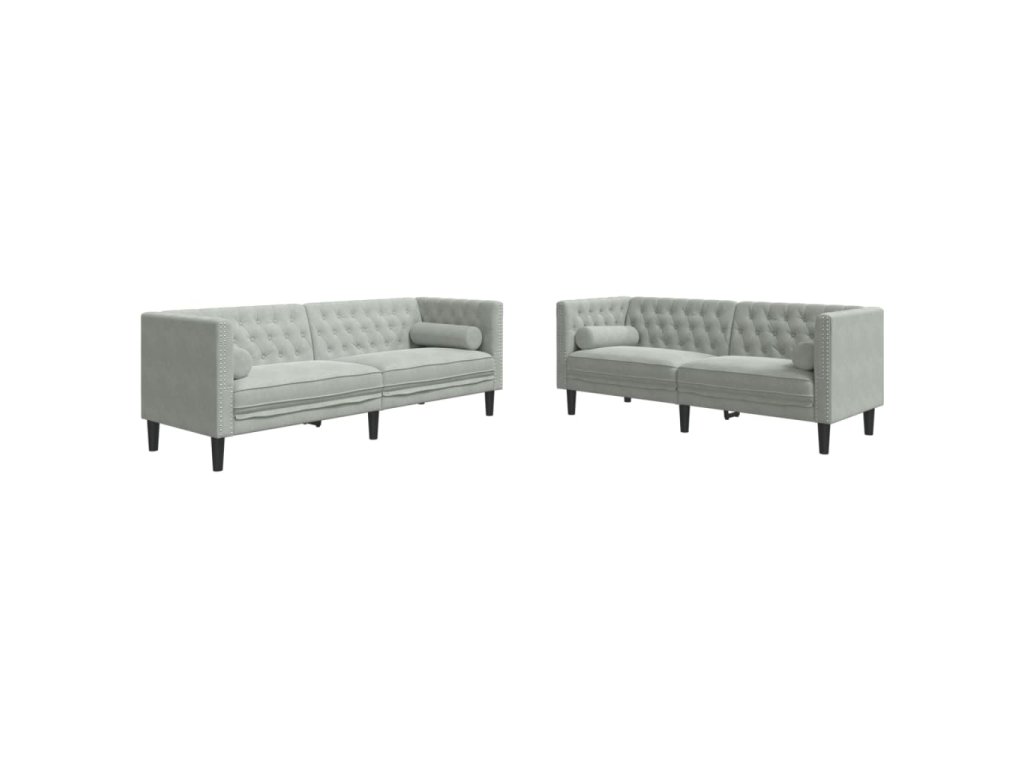 2dílná sedačka Chesterfield s podhlavníky světle šedá samet 3209291