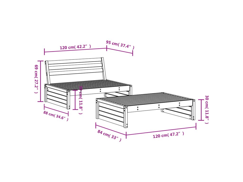 - Rozměry středové pohovky: 120 x 95 x 69 cm (D x Š x V)