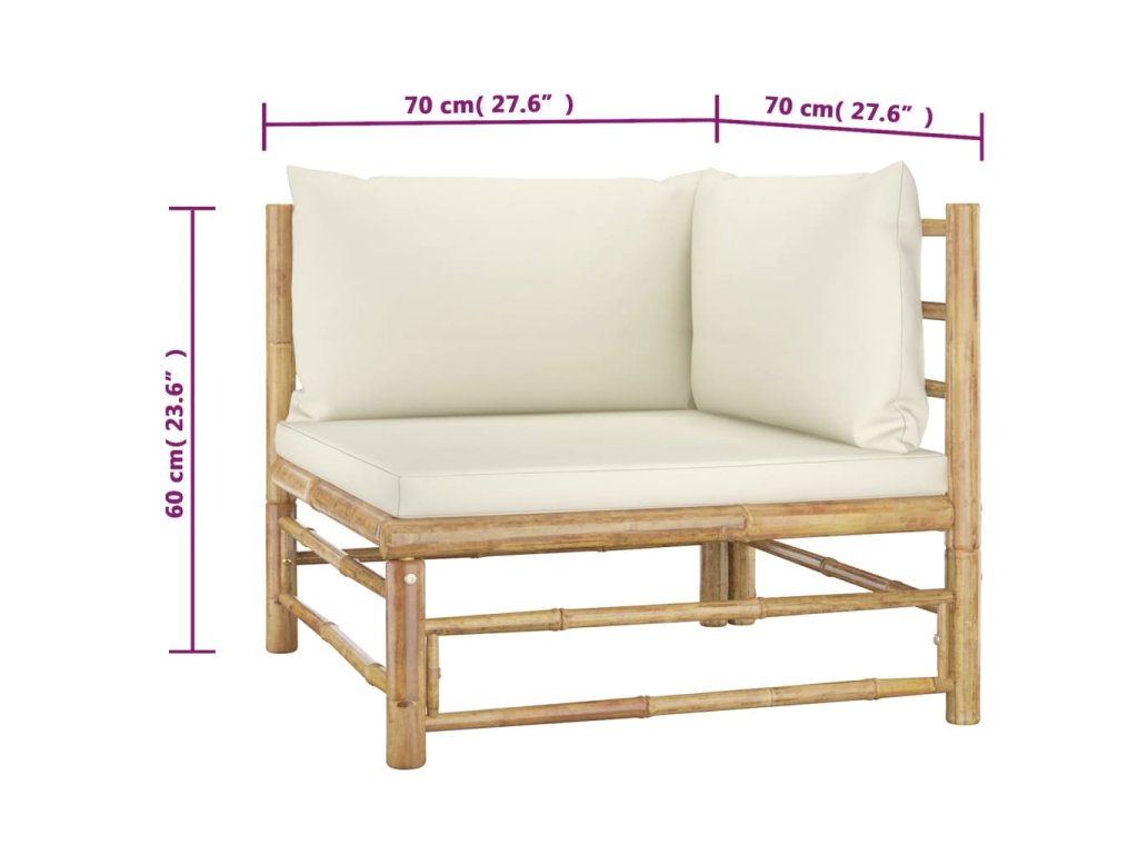 Zahradní sedací souprava je vyrobená z bambusu, takže je nesmírně odolná a snadno se čistí. Hustě polstrované podušky vám při lenošení zajistí ještě větší pohodlí. Jejich potahy mají zapínání na zip, aby se daly jednoduše sejmout a oprat. Lehká konstrukce nábytku umožňuje nenáročné přesouvání.