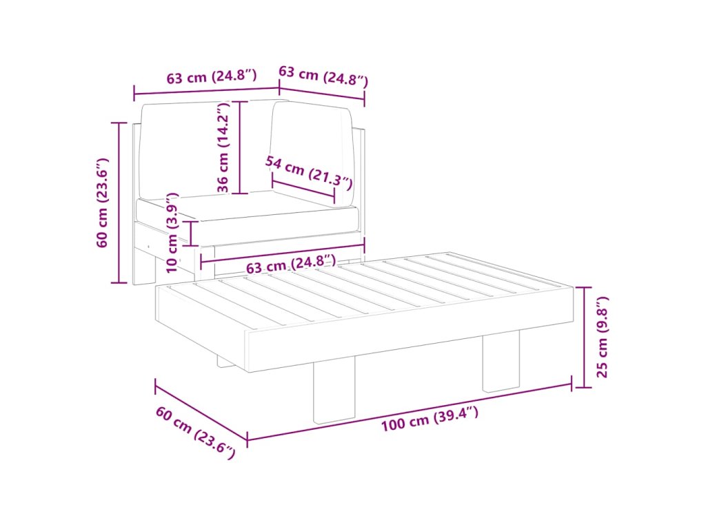 - Rozměry pohovky: 63 x 63 x 60 cm (Š x H x V)