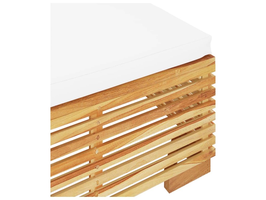 - Materiál: masivní teakové tvrdé dřevo s povrchovou úpravou na vodní bázi, textil (100% polyester)