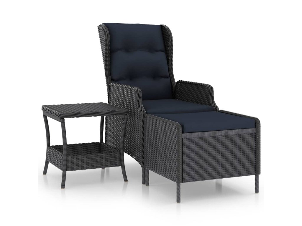 Zahradní polohovací křeslo i čajový stolek mají rám z práškově lakované oceli opletený kulatým PE ratanem, takže jsou odolné a snadno se čistí. Hustě polstrované podušky vám při odpočinku zajistí zvýšené pohodlí. Jejich potahy jsou opatřené zipy, aby se daly sejmout a oprat. Mechanismus s plynovým pístem vám umožňuje naklopit opěradlo do preferované pozice. Stiskem bočního tlačítka ho můžete sklopit až do příjemné polohy vleže. Židle je jako stvořená pro relaxaci, zvlášť když si položíte nohy na sladěnou podnožku, kterou můžete přesouvat podle svých představ. Robustní stolní deska vám skvěle poslouží k odkládání či vystavování nejrůznějších věcí. Sedací souprava má lehkou konstrukci, takže ji bez námahy přesunete z místa na místo.