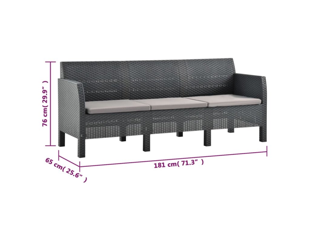 2dílná zahradní sedací souprava podušky PP ratan antracitová 3079668