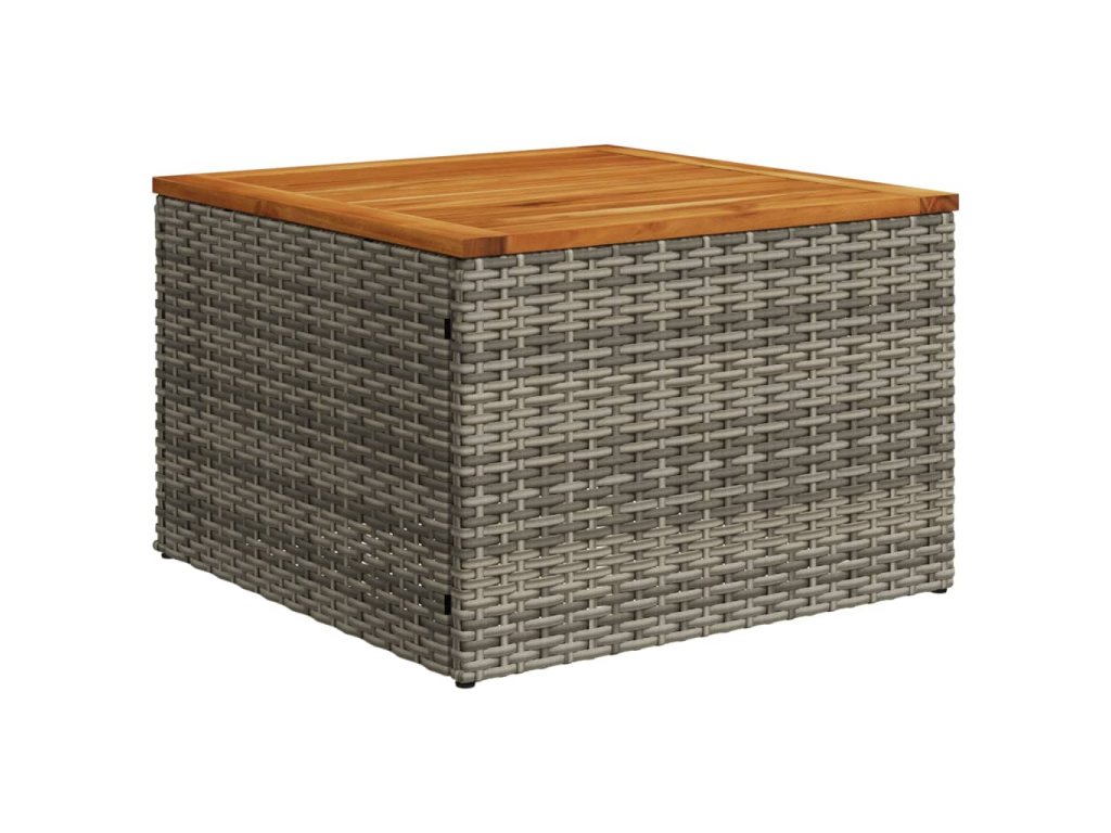 - Materiál: PE ratan, práškově lakovaná ocel, masivní akáciové dřevo s olejovou povrchovou úpravou