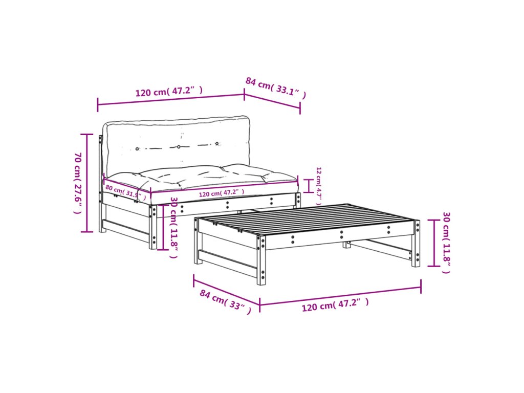 - Rozměry zahradní podnožky / konferenčního stolku: 120 x 84 x 30 cm (D x Š x V)