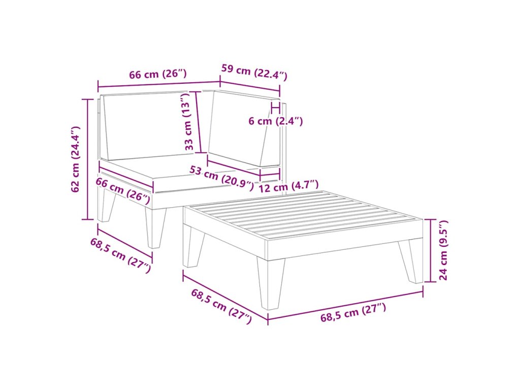 - Rozměry stolu: 68,5 x 68,5 x 24 cm (Š x H x V)