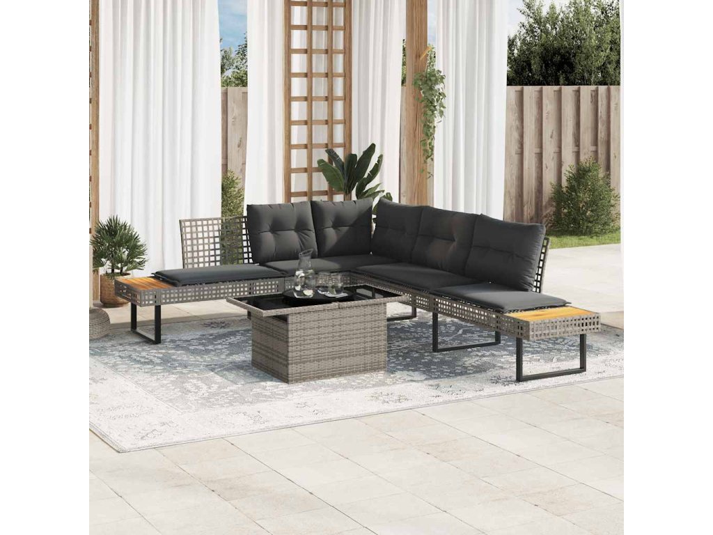 Tato zahradní sedací souprava je dokonalým doplňkem vaší zahrady, terasy nebo dvorku a poskytne vám pohodlné a příjemné místo, kde si můžete povídat s rodinou a přáteli nebo jen tak odpočívat a užívat si pobyt venku.
