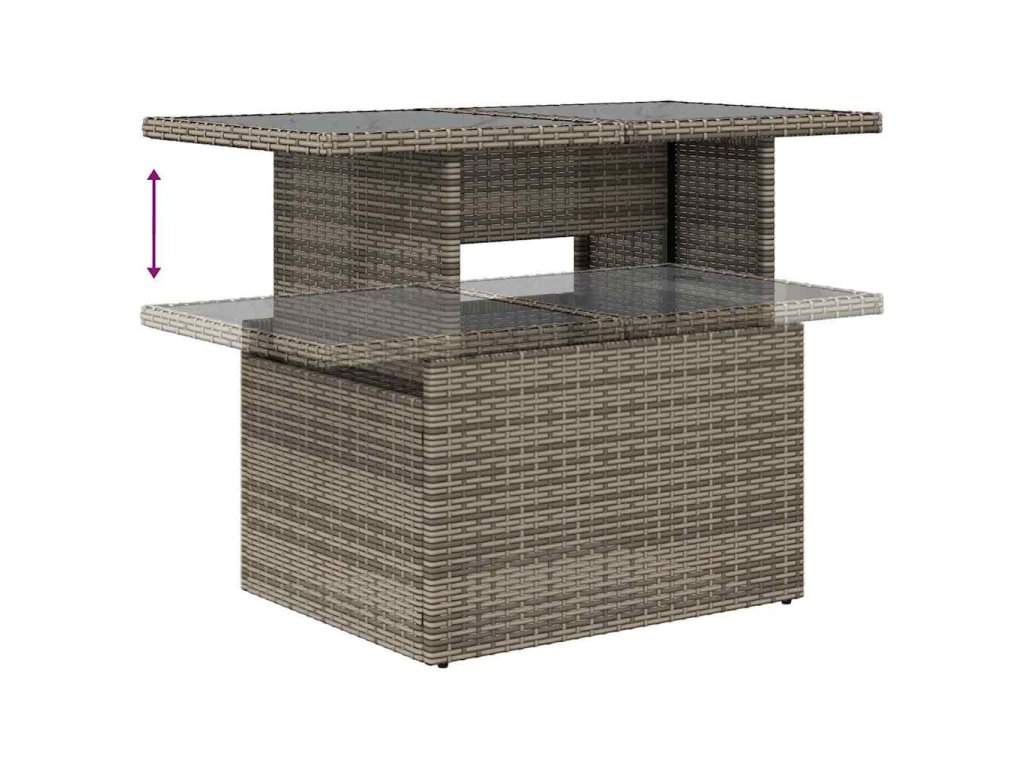 - Nastavitelná deska stolu: Desku stolu lze zvednout a stůl tak vyšplhat výše, čímž se venkovní stůl promění z konferenčního stolku na jídelní stůl. Je ideální pro pozvání hostů nebo pro venkovní stolování.