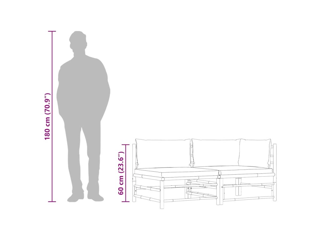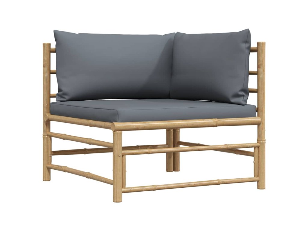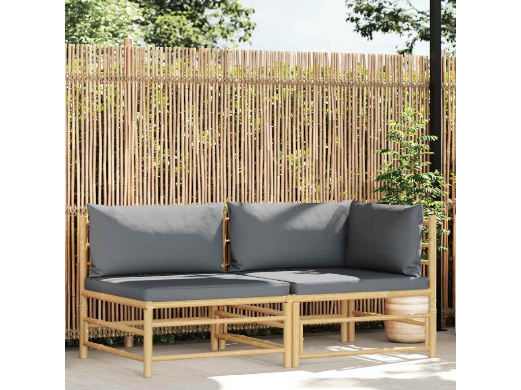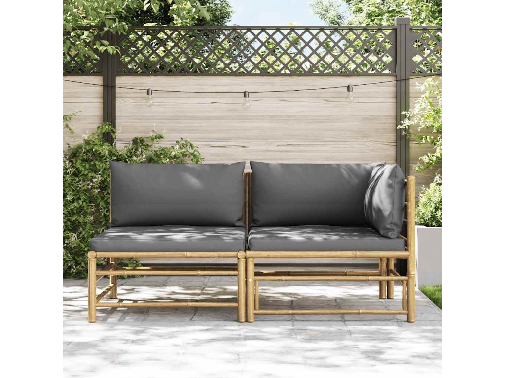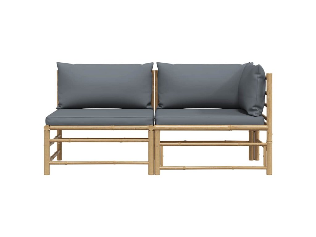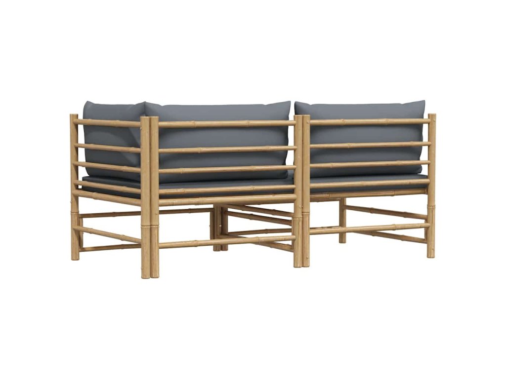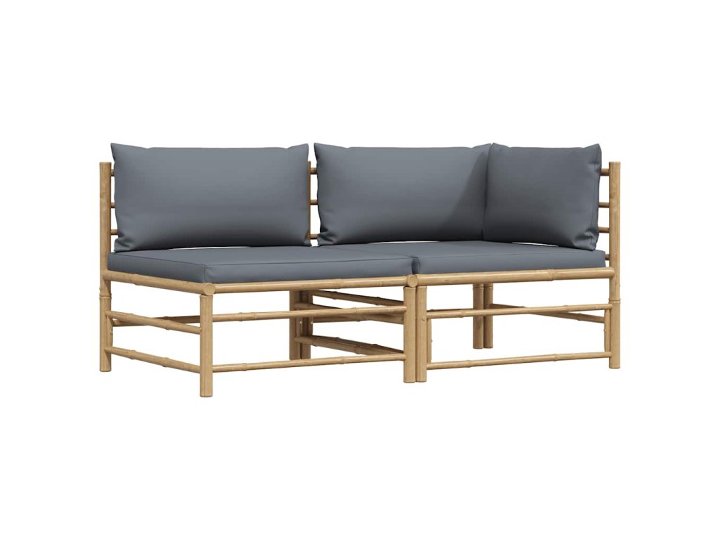 2dílná zahradní sedací souprava s tmavě šedými poduškami bambus 313151