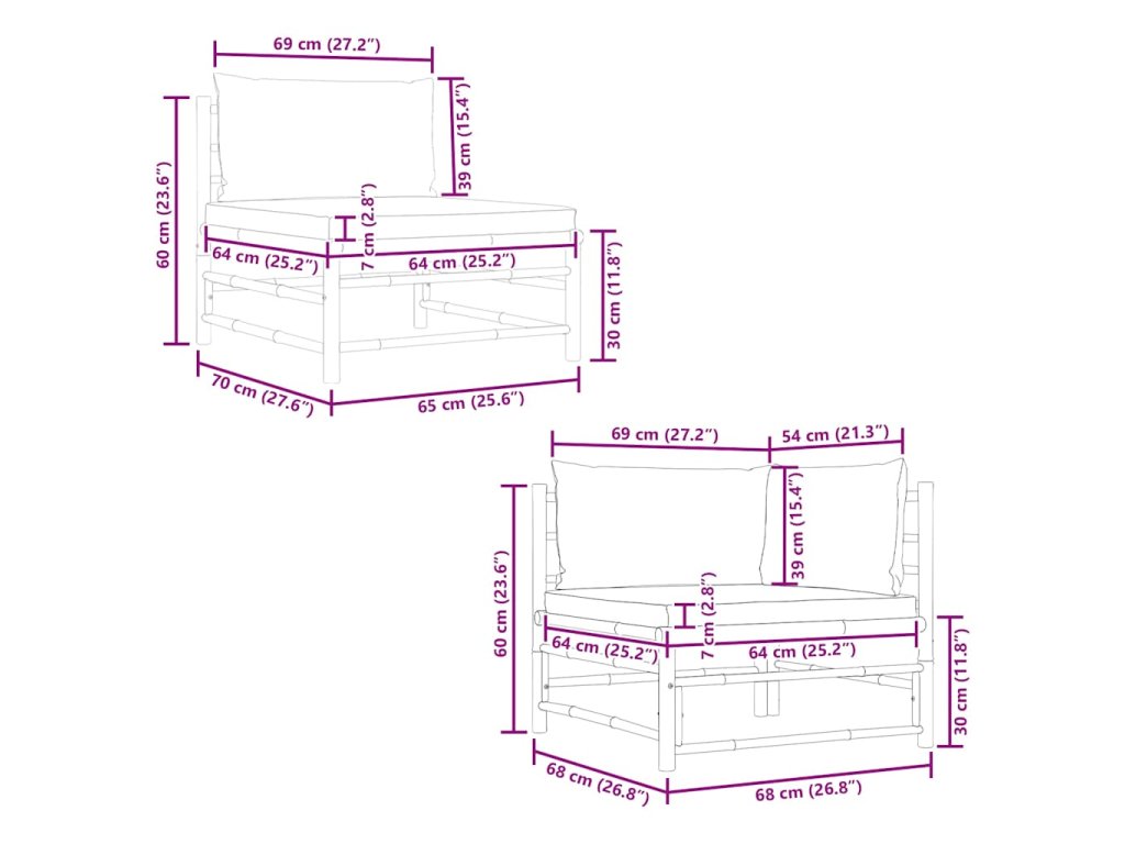 - Rozměry střední pohovky: 65 x 70 x 60 cm (Š x H x V)