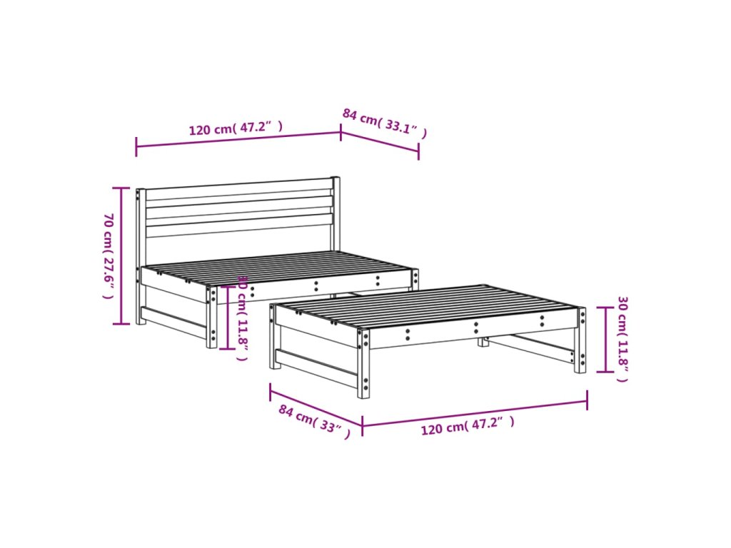 - Rozměry konferenčního stolku / zahradní podnožky: 120 x 84 x 30 cm (D x Š x V)