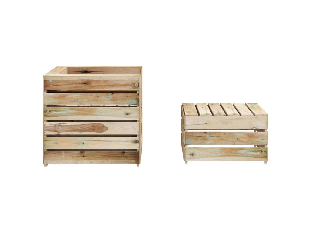 Zahradní sedací souprava je vyrobená z impregnovaného borového dřeva, které je odolné proti hnilobám a má dlouhou životnost. Tato sestava zahradního nábytku má pevnou konstrukci a nevyžaduje téměř žádnou údržbu. Stolek má robustní desku, je proto ideální k odkládání nápojů a občerstvení na dosah ruky. Zahradní posezení má modulární design, a tak si ho můžete přizpůsobit každému prostředí dle svých představ.