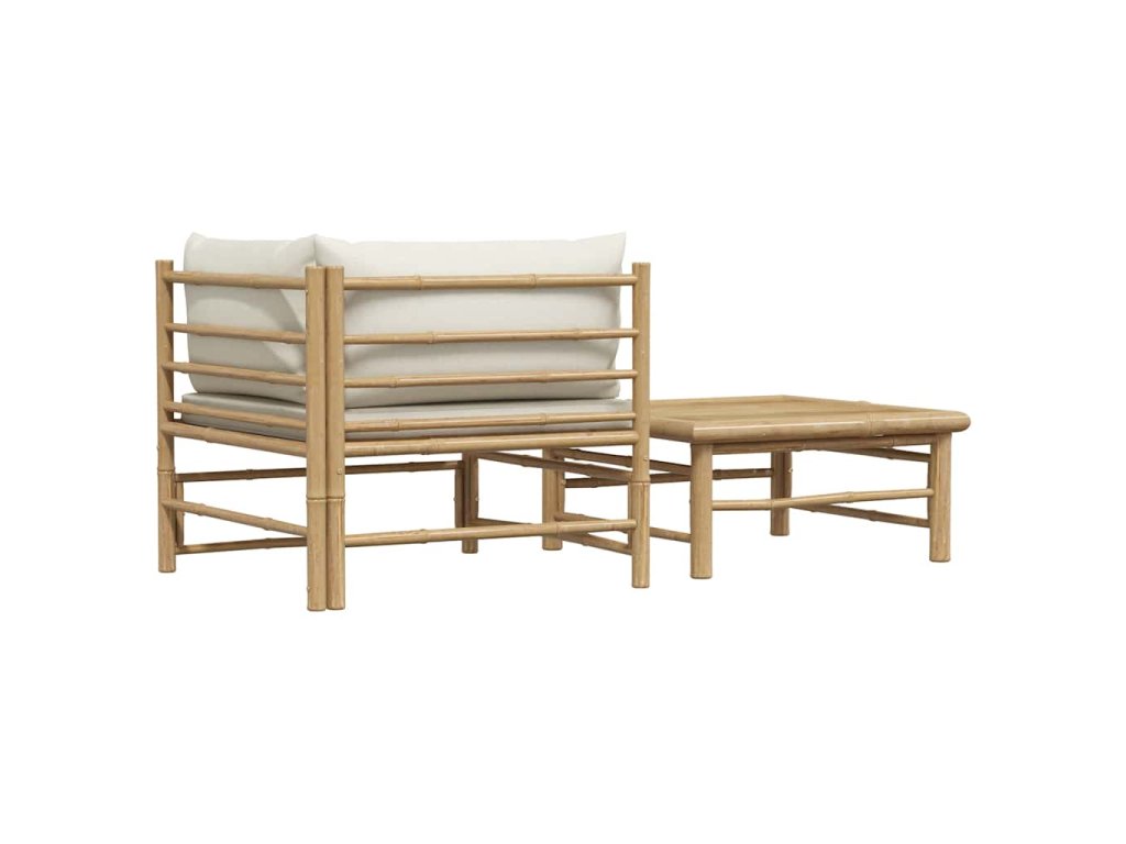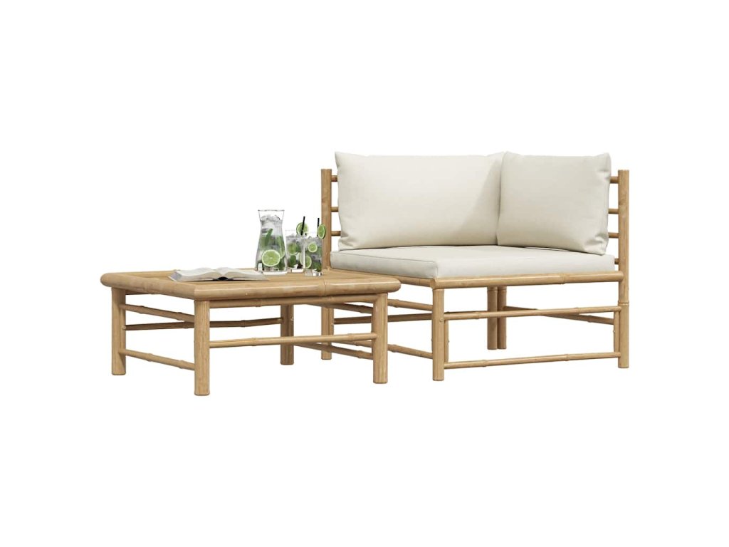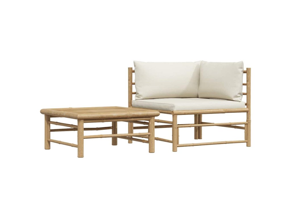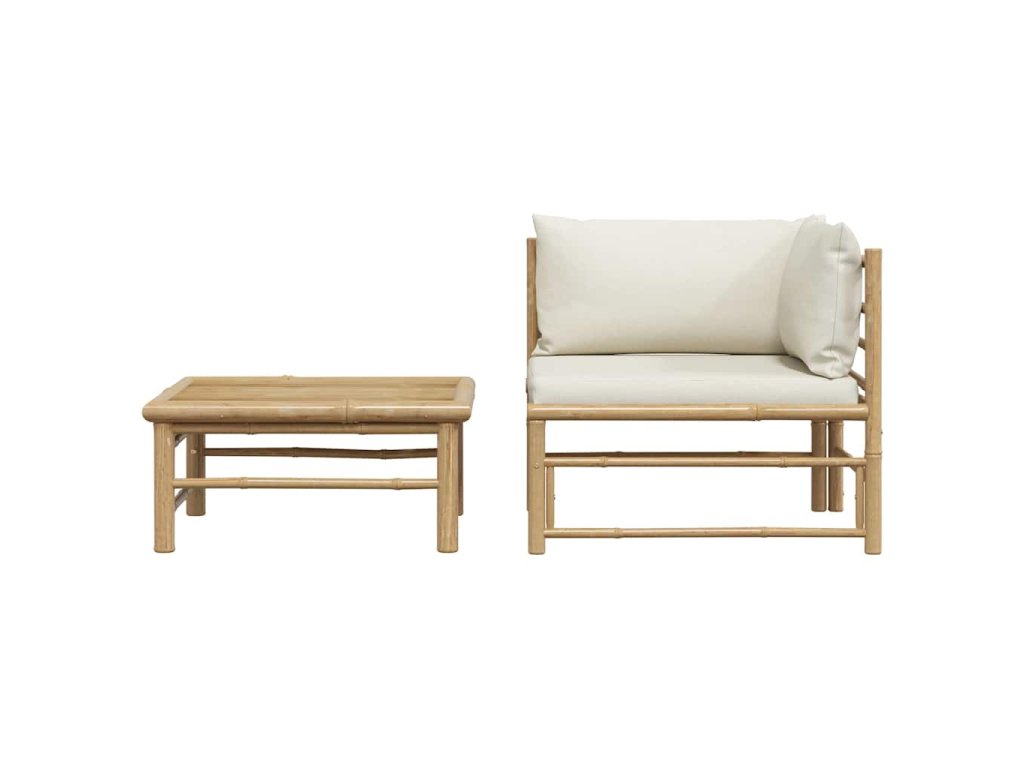2dílná zahradní souprava s krémově bílými poduškami bambus 313144