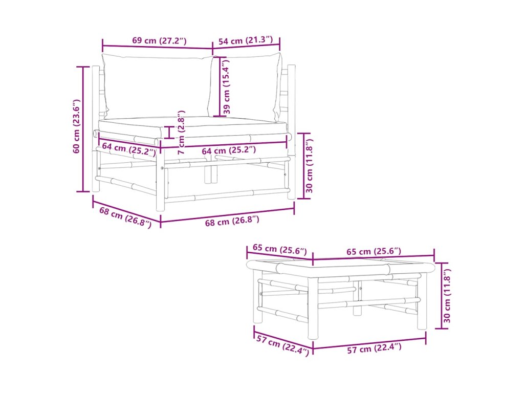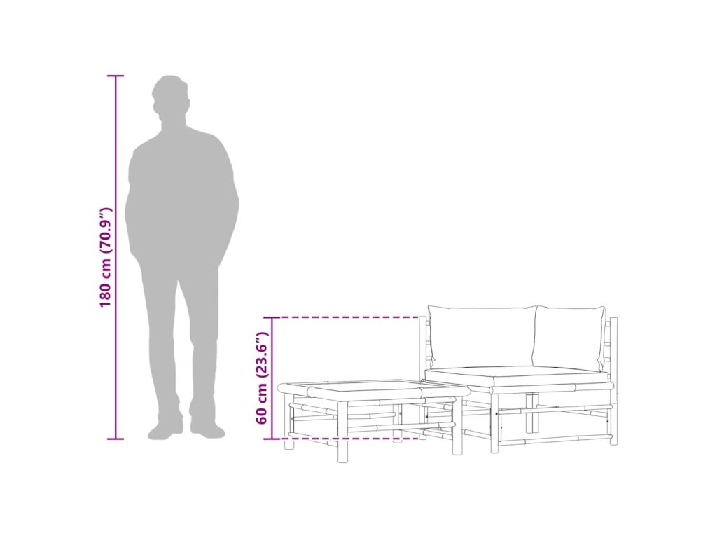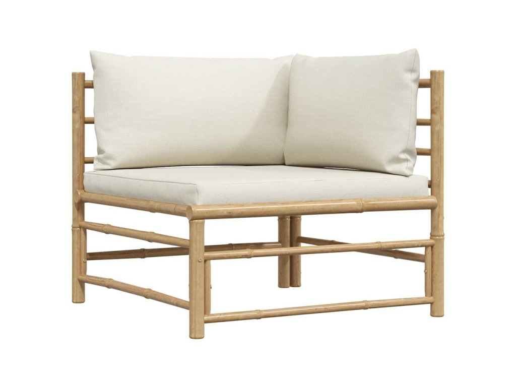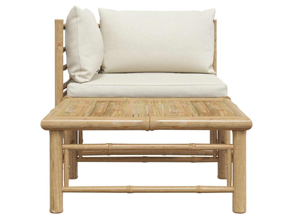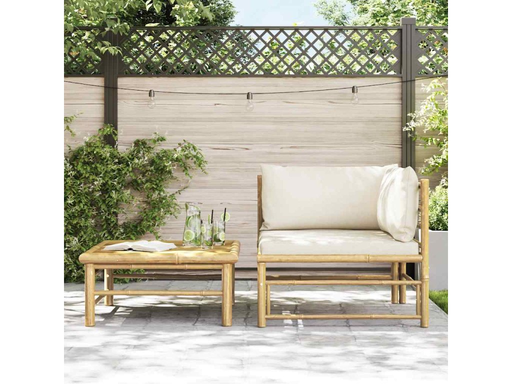 2dílná zahradní souprava s krémově bílými poduškami bambus 313144
