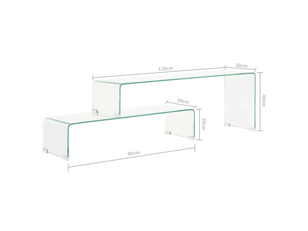 2dílný konferenční stolek 90x30x20 / 110x30x40 cm tvrzené sklo 284728