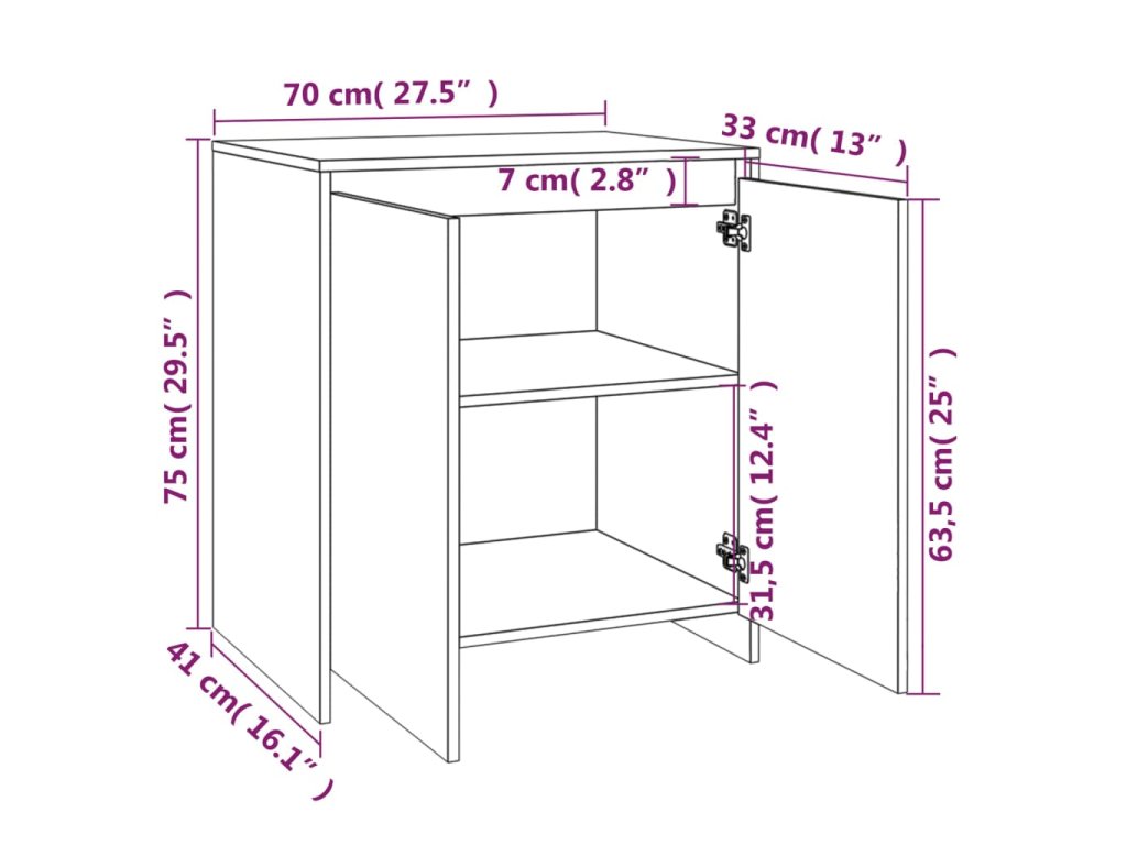 - Rozměry příborníku s dvířky: 70 x 41 x 75 cm (Š x H x V)